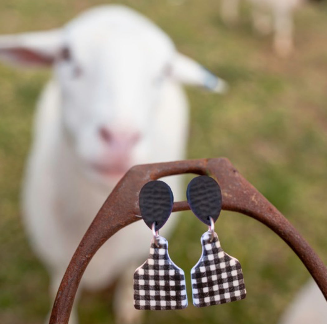 CATTLE TAG - DANGLE | EARRINGS | BLACK GINGHAM